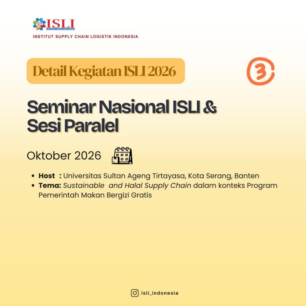 Informasi lebih lanjut mengenai pendaftaran, jadwal detail, dan teknis pelaksanaan setiap kegiatan akan diumumkan secara bertahap melalui website dan media sosial resmi ISLI. Kami mengundang seluruh anggota dan mitra ISLI untuk berpartisipasi aktif dan bersama-sama berkontribusi dalam penguatan ekosistem supply chain dan logistik Indonesia.